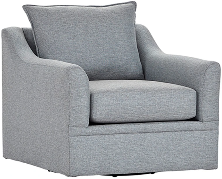 The Hughes Furniture® Swivel Chair offers spacious comfort with a stylish flair. Upholstered in a soft, grande mist-colored fabric, it features a generously sized seat, plush cushions, and smooth swivel motion for easy movement. Perfect for lounging or conversation, this chair adds a cozy, elegant touch to any room.Read More