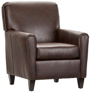 The Hughes Furniture occasional chair combines lodge-inspired warmth with refined detailing. Upholstered in ridgeline brownie, it features a sturdy hardwood frame and foam for lasting comfort. Elegant antique-gold nailhead trim and welted, top-stitched back cushions add a charming touch.Read More