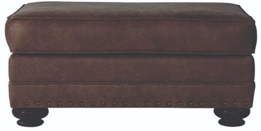 Complete your living space with the 17400 ottoman from Hughes Furniture—a versatile accent that brings both rugged style and everyday comfort. Upholstered in a rich, leather-look Ridgeline Brownie fabric, this ottoman showcases a classic design.Read More